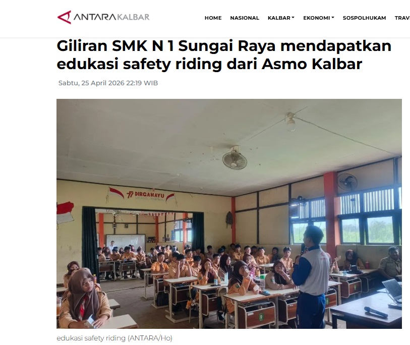 Giliran SMK N 1 Sungai Raya mendapatkan edukasi safety riding dari Asmo Kalbar by Dedi 25 April 2026 in Silahkan kunjungi https://kalbar.antaranews.com/berita/698864/giliran-smk-n-1-sungai-raya-mendapatkan-edukasi-safety-riding-dari-asmo-kalbar. You Might Like Regional Public Launching New ADV160 The SUV Pride Grand Launching New PCX 160 Truly Exceptional! Tetap hati-hati ya bro sist berkendara saat hujan.