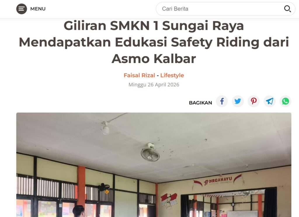 Giliran SMKN 1 Sungai Raya Mendapatkan Edukasi Safety Riding dari Asmo Kalbar by Dodi Dodi 26 April 2026 in Silahkan kunjungi https://harianberkat.com/2026/04/26/giliran-smkn-1-sungai-raya-mendapatkan-edukasi-safety-riding-dari-asmo-kalbar/. You Might Like Regional Public Launching New ADV160 The SUV Pride Grand Launching New PCX 160 Truly Exceptional! Tetap hati-hati ya bro sist berkendara saat hujan.