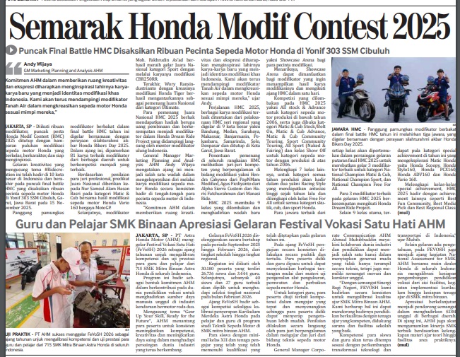 Guru dan Pelajar SMK Binaan Apresiasi Gelaran Festival Vokasi Satu Hati AHM by masmul 27 November 2025 in Silahkan buka . You Might Like Regional Public Launching New ADV160 The SUV Pride Grand Launching New PCX 160 Truly Exceptional! Tetap hati-hati ya bro sist berkendara saat hujan.