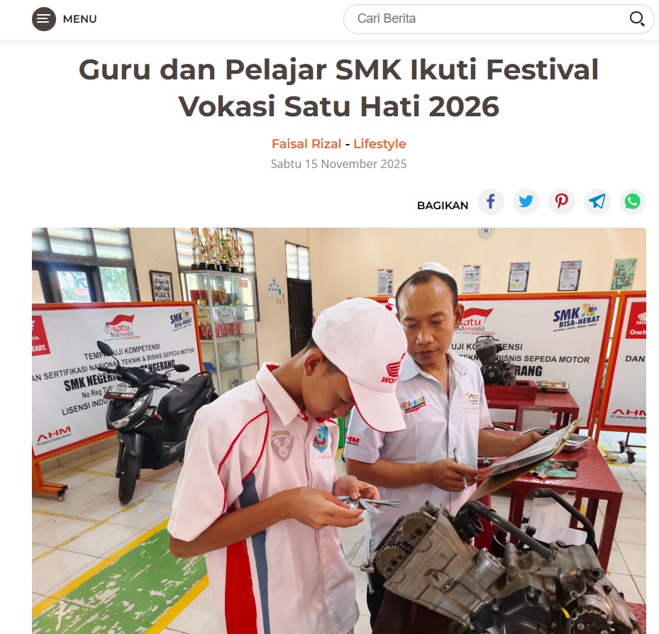 Guru dan Pelajar SMK Ikuti Festival Vokasi Satu Hati 2026 by Dodi Dodi 15 November 2025 in Silahkan kunjungi https://harianberkat.com/2025/11/15/guru-dan-pelajar-smk-ikuti-festival-vokasi-satu-hati-2026/. You Might Like Regional Public Launching New ADV160 The SUV Pride Grand Launching New PCX 160 Truly Exceptional! Tetap hati-hati ya bro sist berkendara saat hujan.