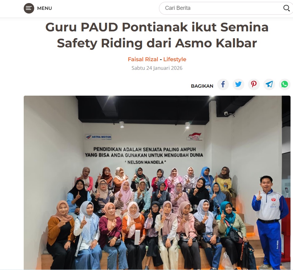 Guru PAUD Pontianak ikut Semina Safety Riding dari Asmo Kalbar by Dodi Dodi 24 Januari 2026 in Silahkan kunjungi https://harianberkat.com/2026/01/24/guru-paud-pontianak-ikut-semina-safety-riding-dari-asmo-kalbar/. You Might Like Regional Public Launching New ADV160 The SUV Pride Grand Launching New PCX 160 Truly Exceptional! Tetap hati-hati ya bro sist berkendara saat hujan.