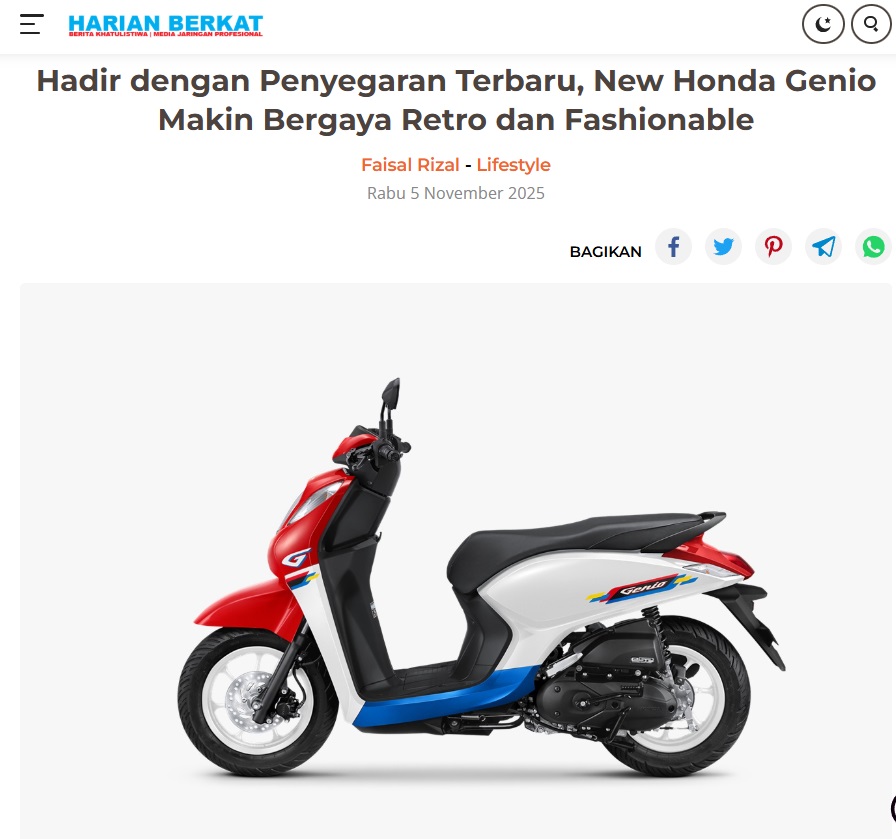 Hadir dengan Penyegaran Terbaru, New Honda Genio Makin Bergaya Retro dan Fashionable by Dodi Dodi 5 November 2025 in Silahkan kunjungi https://harianberkat.com/2025/11/05/hadir-dengan-penyegaran-terbaru-new-honda-genio-makin-bergaya-retro-dan-fashionable/. You Might Like Regional Public Launching New ADV160 The SUV Pride Grand Launching New PCX 160 Truly Exceptional! Tetap hati-hati ya bro sist berkendara saat hujan.