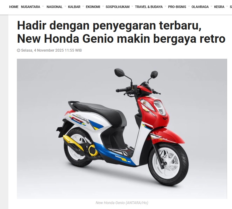 Hadir dengan penyegaran terbaru, New Honda Genio makin bergaya retro by Dedi 4 November 2025 in Silahkan kunjungi https://kalbar.antaranews.com/berita/672365/hadir-dengan-penyegaran-terbaru-new-honda-genio-makin-bergaya-retro. You Might Like Regional Public Launching New ADV160 The SUV Pride Grand Launching New PCX 160 Truly Exceptional! Tetap hati-hati ya bro sist berkendara saat hujan.