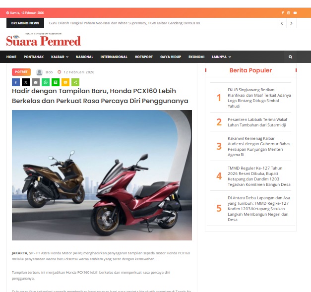 Hadir dengan Tampilan Baru, Honda PCX160 Lebih Berkelas dan Perkuat Rasa Percaya Diri Penggunanya by masmul 12 Februari 2026 in Silahkan kunjungi https://www.suarapemredkalbar.com/read/potret/12022026/hadir-dengan-tampilan-baru-honda-pcx160-lebih-berkelas-dan-perkuat-rasa-percaya-diri-penggunanya. You Might Like Regional Public Launching New ADV160 The SUV Pride Grand Launching New PCX 160 Truly Exceptional! Tetap hati-hati ya bro sist berkendara saat hujan.