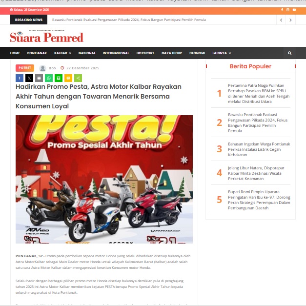 Hadirkan Promo Pesta, Astra Motor Kalbar Rayakan Akhir Tahun dengan Tawaran Menarik Bersama Konsumen Loyal by masmul 22 Desember 2025 in Silahkan kunjungi https://www.suarapemredkalbar.com/read/potret/22122025/hadirkan-promo-pesta-astra-motor-kalbar-rayakan-akhir-tahun-dengan-tawaran-menarik-bersama-konsumen-loyal. You Might Like Regional Public Launching New ADV160 The SUV Pride Grand Launching New PCX 160 Truly Exceptional! Tetap hati-hati ya bro sist berkendara saat hujan.