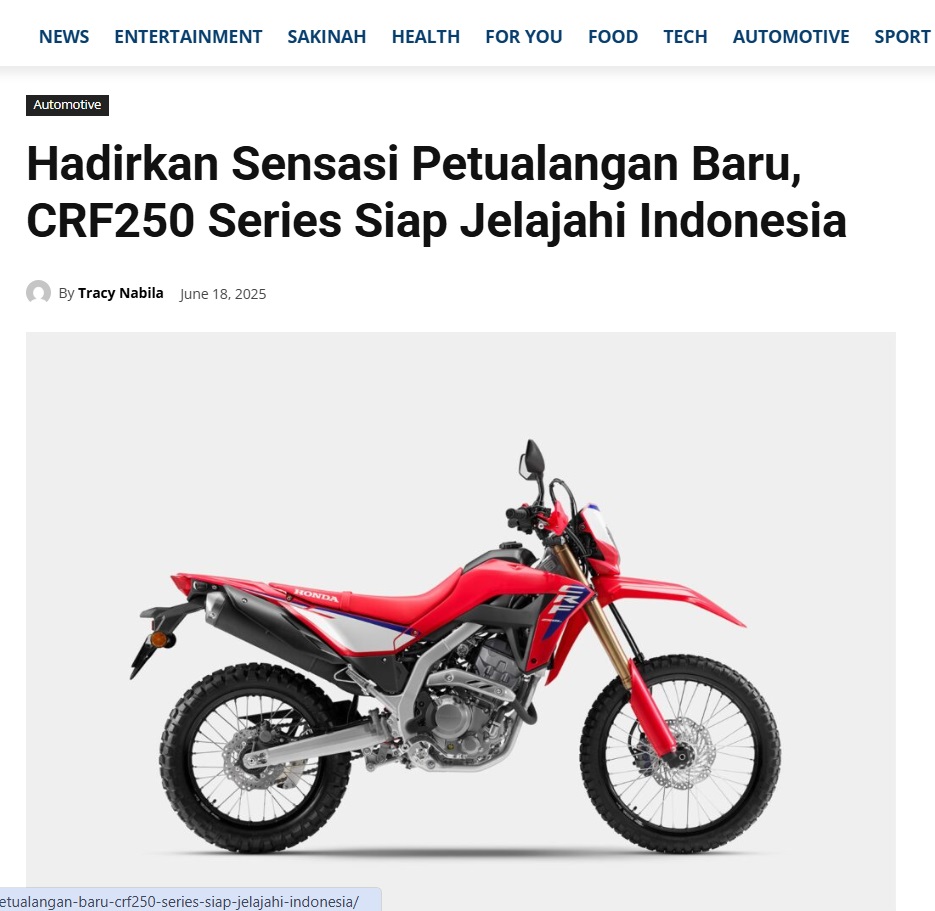 Hadirkan Sensasi Petualangan Baru, CRF250 Series Siap Jelajahi Indonesia by Leo Prima 18 Juni 2025 in Silahkan kunjungi https://pontianaktoday.id/hadirkan-sensasi-petualangan-baru-crf250-series-siap-jelajahi-indonesia/. You Might Like Regional Public Launching New ADV160 The SUV Pride Grand Launching New PCX 160 Truly Exceptional! Tetap hati-hati ya bro sist berkendara saat hujan.