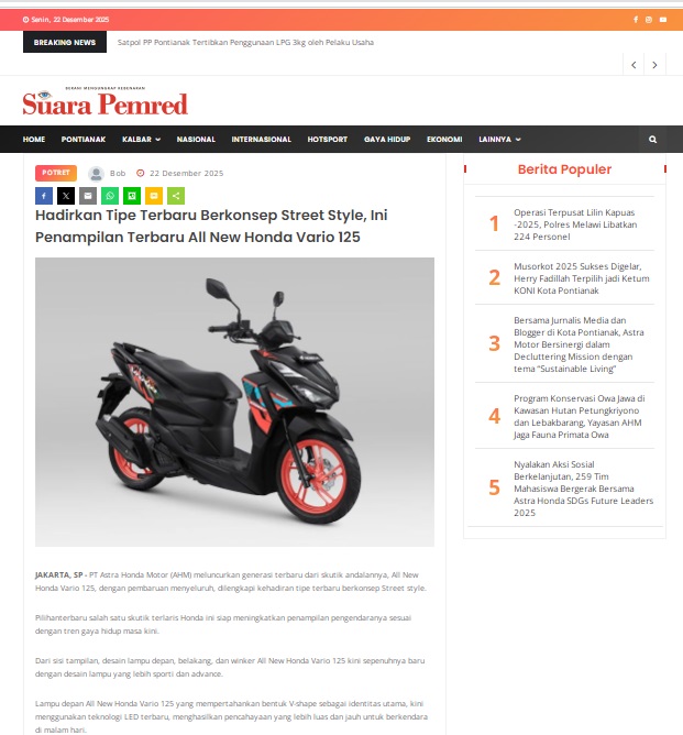 Hadirkan Tipe Terbaru Berkonsep Street Style, Ini Penampilan Terbaru All New Honda Vario 125 by masmul 22 Desember 2025 in Silahkan kunjungi https://www.suarapemredkalbar.com/read/potret/22122025/hadirkan-tipe-terbaru-berkonsep-street-style-ini-penampilan-terbaru-all-new-honda-vario-125. You Might Like Regional Public Launching New ADV160 The SUV Pride Grand Launching New PCX 160 Truly Exceptional! Tetap hati-hati ya bro sist berkendara saat hujan.