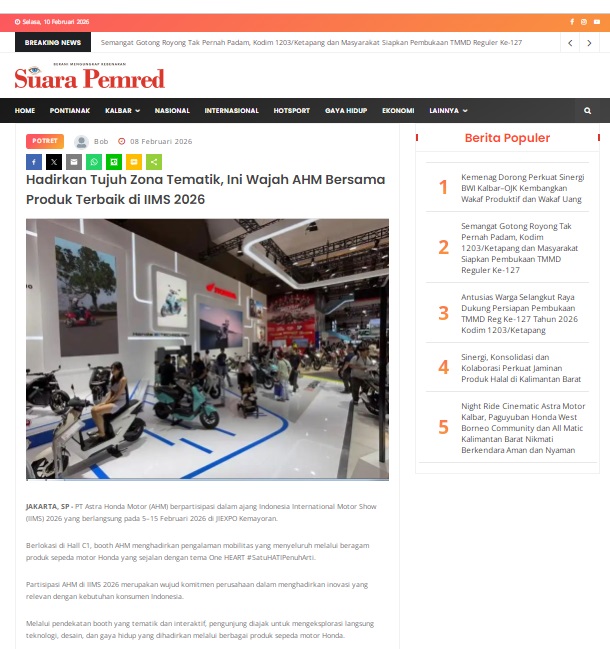 Hadirkan Tujuh Zona Tematik, Ini Wajah AHM Bersama Produk Terbaik di IIMS 2026 by masmul 8 Februari 2026 in Silahkan kunjungi https://www.suarapemredkalbar.com/read/potret/08022026/hadirkan-tujuh-zona-tematik-ini-wajah-ahm-bersama-produk-terbaik-di-iims-2026. You Might Like Regional Public Launching New ADV160 The SUV Pride Grand Launching New PCX 160 Truly Exceptional! Tetap hati-hati ya bro sist berkendara saat hujan.