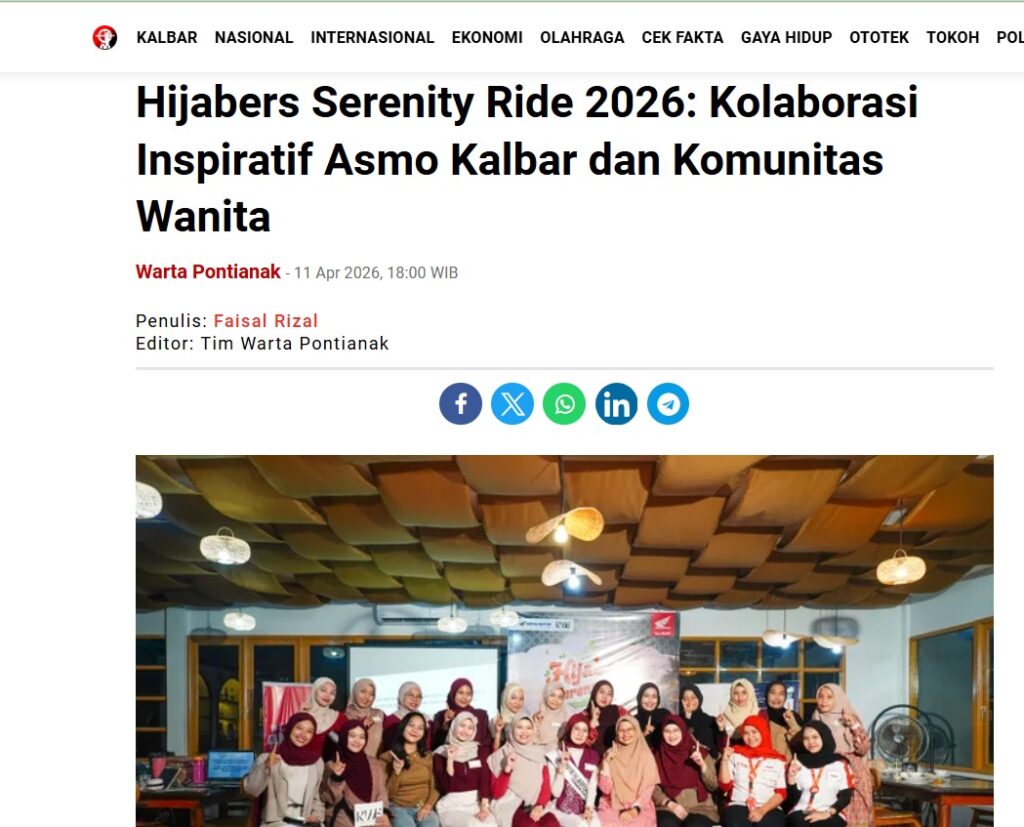 Hijabers Serenity Ride 2026: Kolaborasi Inspiratif Asmo Kalbar dan Komunitas Wanita by Faisal Rizal 11 April 2026 in Silahkan kunjungi https://wartapontianak.pikiran-rakyat.com/gaya-hidup/pr-11710132477/hijabers-serenity-ride-2026-kolaborasi-inspiratif-asmo-kalbar-dan-komunitas-wanita. You Might Like Regional Public Launching New ADV160 The SUV Pride Grand Launching New PCX 160 Truly Exceptional! Tetap hati-hati ya bro sist berkendara saat hujan.
