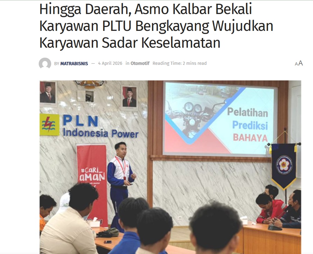 Hingga Daerah, Asmo Kalbar Bekali Karyawan PLTU Bengkayang Wujudkan Karyawan Sadar Keselamatan by Sri Yuliantiningsih 4 April 2026 in Silahkan kunjungi https://matrabisnis.id/2026/04/04/hingga-daerah-asmo-kalbar-bekali-karyawan-pltu-bengkayang-wujudkan-karyawan-sadar-keselamatan/. You Might Like Regional Public Launching New ADV160 The SUV Pride Grand Launching New PCX 160 Truly Exceptional! Tetap hati-hati ya bro sist berkendara saat hujan.
