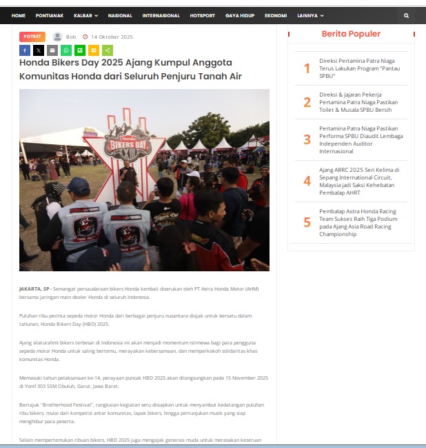 Honda Bikers Day 2025 Ajang Kumpul Anggota Komunitas Honda dari Seluruh Penjuru Tanah Air by masmul 14 Oktober 2025 in Silahkan kunjungi https://www.suarapemredkalbar.com/read/potret/14102025/honda-bikers-day-2025-ajang-kumpul-anggota-komunitas-honda-dari-seluruh-penjuru-tanah-air. You Might Like Regional Public Launching New ADV160 The SUV Pride Grand Launching New PCX 160 Truly Exceptional! Tetap hati-hati ya bro sist berkendara saat hujan.