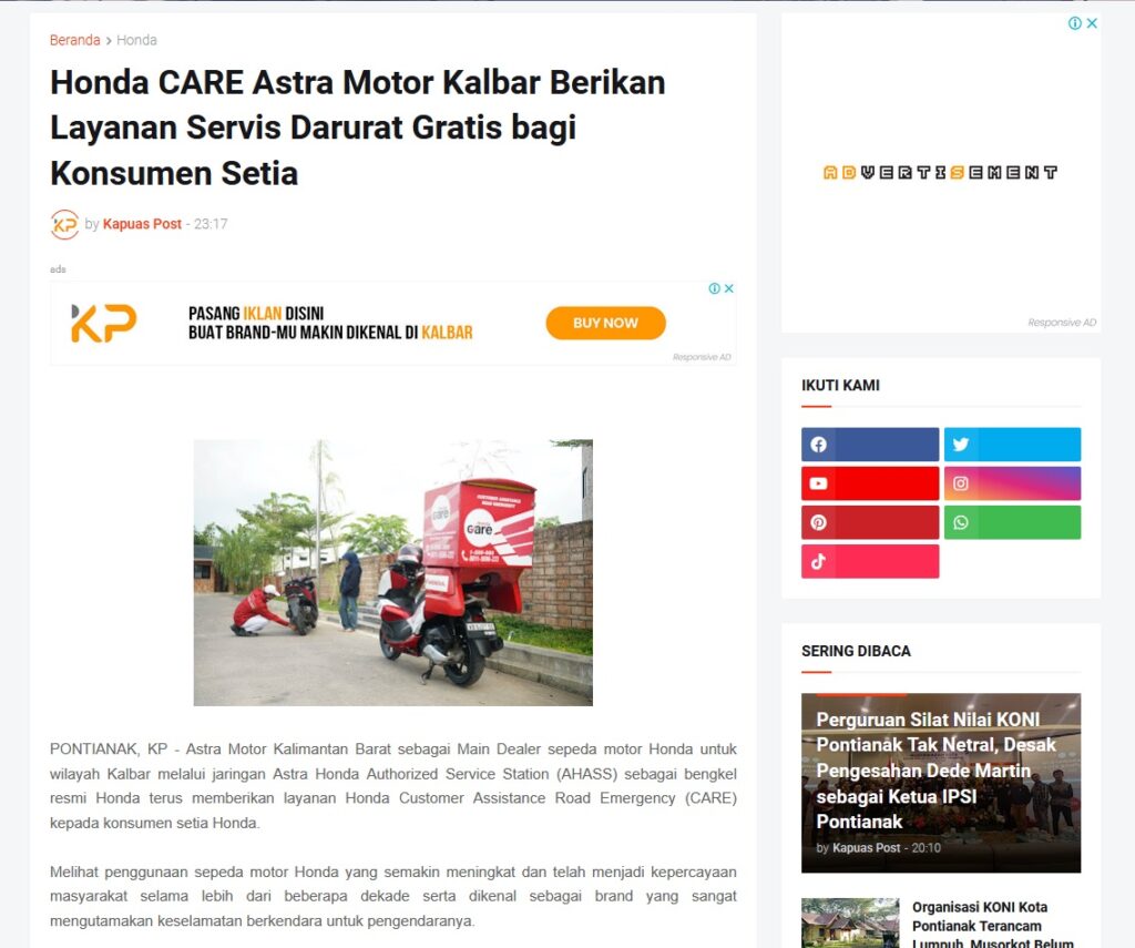 Honda CARE Astra Motor Kalbar Berikan Layanan Servis Darurat Gratis bagi Konsumen Setia by Muhammad Arif 21 Desember 2025 in Silahkan kunjungi https://www.kapuaspost.web.id/2025/12/honda-care-astra-motor-kalbar-berikan.html. Tags: astra Astra Motor kalbar Astra Motor Pontianak astramotor honda kalbar pontianak sepeda motor You Might Like Regional Public Launching New ADV160 The SUV Pride Grand Launching New PCX 160 Truly Exceptional! Tetap hati-hati ya bro sist berkendara saat hujan.
