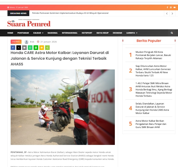 Honda CARE Astra Motor Kalbar: Layanan Darurat di Jalanan & Service Kunjung dengan Teknisi Terbaik AHASS by masmul 21 Januari 2026 in Silahkan kunjungi https://www.suarapemredkalbar.com/read/potret/21012026/honda-care-astra-motor-kalbar-layanan-darurat-di-jalanan-service-kunjung-dengan-teknisi-terbaik-ahass. You Might Like Regional Public Launching New ADV160 The SUV Pride Grand Launching New PCX 160 Truly Exceptional! Tetap hati-hati ya bro sist berkendara saat hujan.