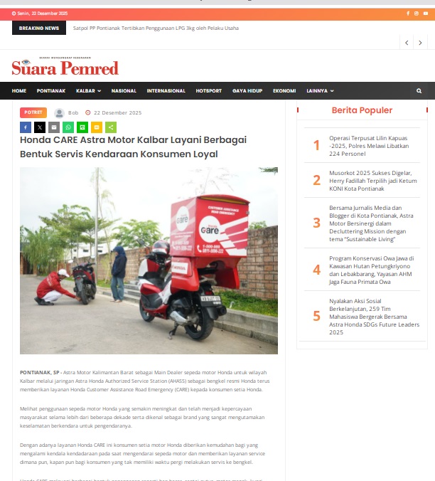 Honda CARE Astra Motor Kalbar Layani Berbagai Bentuk Servis Kendaraan Konsumen Loyal by masmul 22 Desember 2025 in Silahkan kunjungi https://www.suarapemredkalbar.com/read/potret/22122025/honda-care-astra-motor-kalbar-layani-berbagai-bentuk-servis-kendaraan-konsumen-loyal. You Might Like Regional Public Launching New ADV160 The SUV Pride Grand Launching New PCX 160 Truly Exceptional! Tetap hati-hati ya bro sist berkendara saat hujan.
