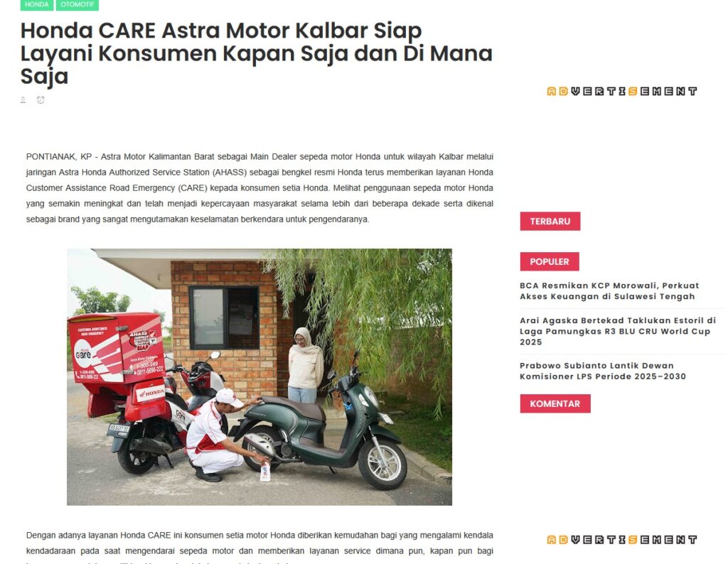 Honda CARE Astra Motor Kalbar Siap Layani Konsumen Kapan Saja dan Di Mana Saja by Muhammad Arif 8 Oktober 2025 in Silahkan kunjungi https://www.kapuaspost.web.id/2025/10/honda-care-astra-motor-kalbar-siap.html. Tags: astra Astra Motor kalbar Astra Motor Pontianak astramotor honda kalbar pontianak sepeda motor You Might Like Regional Public Launching New ADV160 The SUV Pride Grand Launching New PCX 160 Truly Exceptional! Tetap hati-hati ya bro sist berkendara saat hujan.