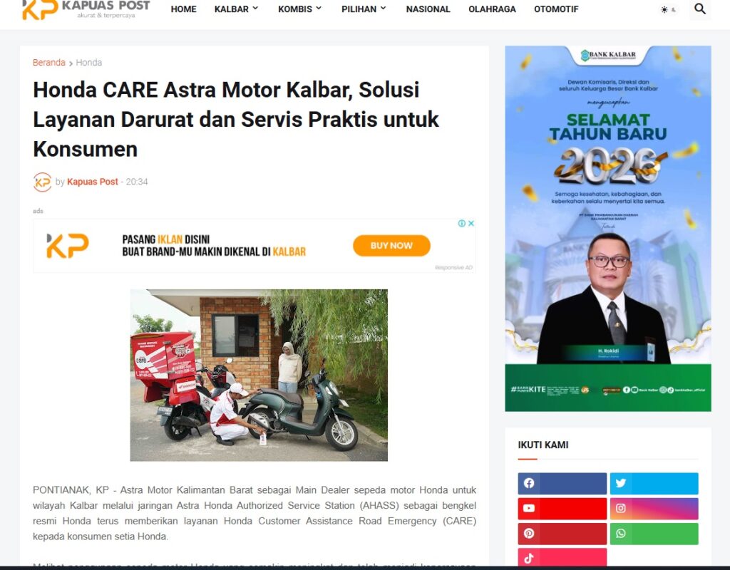 Honda CARE Astra Motor Kalbar, Solusi Layanan Darurat dan Servis Praktis untuk Konsumen by Muhammad Arif 14 Januari 2026 in Silahkan kunjungi https://www.kapuaspost.web.id/2026/01/honda-care-astra-motor-kalbar-solusi.html. Tags: astra Astra Motor kalbar Astra Motor Pontianak astramotor honda kalbar pontianak sepeda motor You Might Like Regional Public Launching New ADV160 The SUV Pride Grand Launching New PCX 160 Truly Exceptional! Tetap hati-hati ya bro sist berkendara saat hujan.