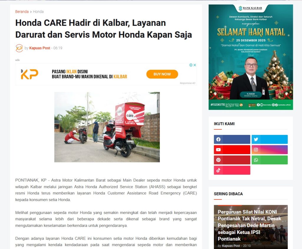 Honda CARE Hadir di Kalbar, Layanan Darurat dan Servis Motor Honda Kapan Saja by Muhammad Arif 23 Desember 2025 in Silahkan kunjungi https://www.kapuaspost.web.id/2025/12/honda-care-hadir-di-kalbar-layanan.html. Tags: astra Astra Motor kalbar Astra Motor Pontianak astramotor honda kalbar pontianak sepeda motor You Might Like Regional Public Launching New ADV160 The SUV Pride Grand Launching New PCX 160 Truly Exceptional! Tetap hati-hati ya bro sist berkendara saat hujan.