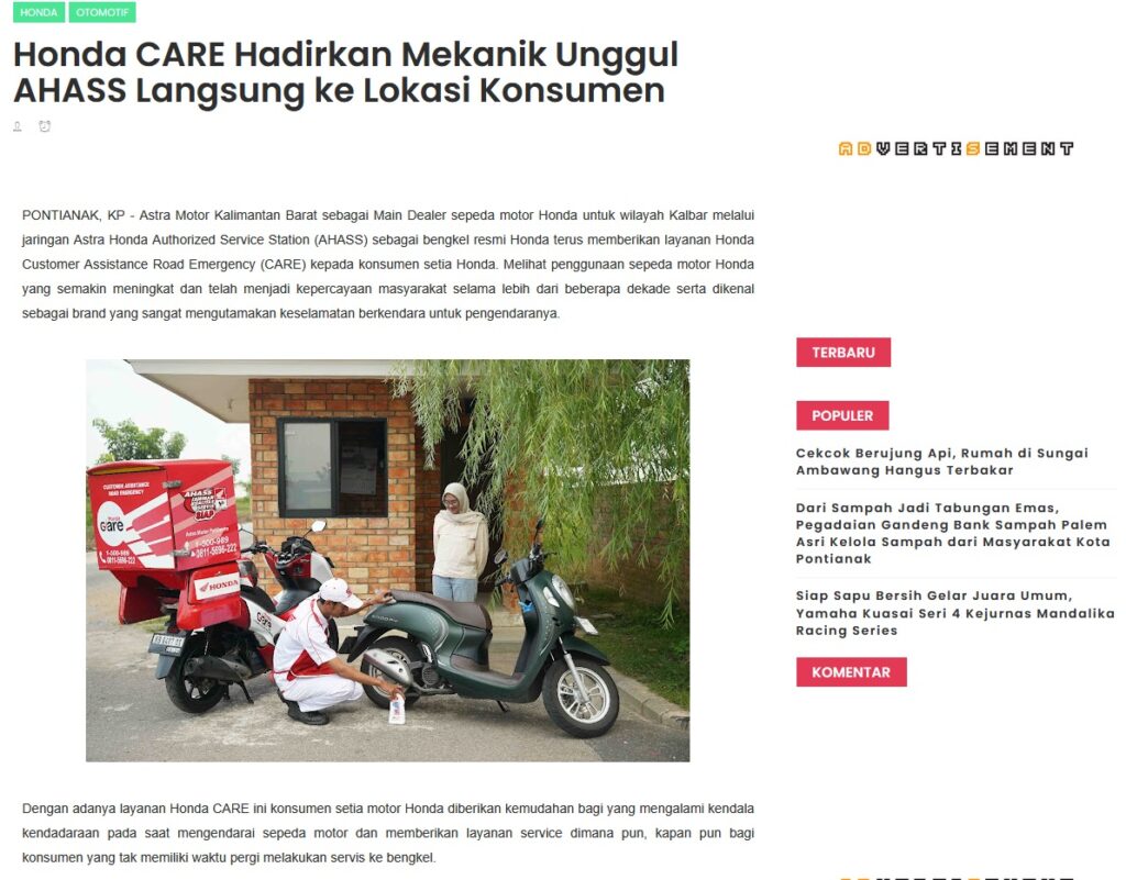 Honda CARE Hadirkan Mekanik Unggul AHASS Langsung ke Lokasi Konsumen by Muhammad Arif 21 September 2025 in Silahkan kunjungi https://www.kapuaspost.web.id/2025/09/honda-care-hadirkan-mekanik-unggul.html. Tags: astra Astra Motor kalbar Astra Motor Pontianak astramotor honda kalbar pontianak sepeda motor You Might Like Regional Public Launching New ADV160 The SUV Pride Grand Launching New PCX 160 Truly Exceptional! Tetap hati-hati ya bro sist berkendara saat hujan.