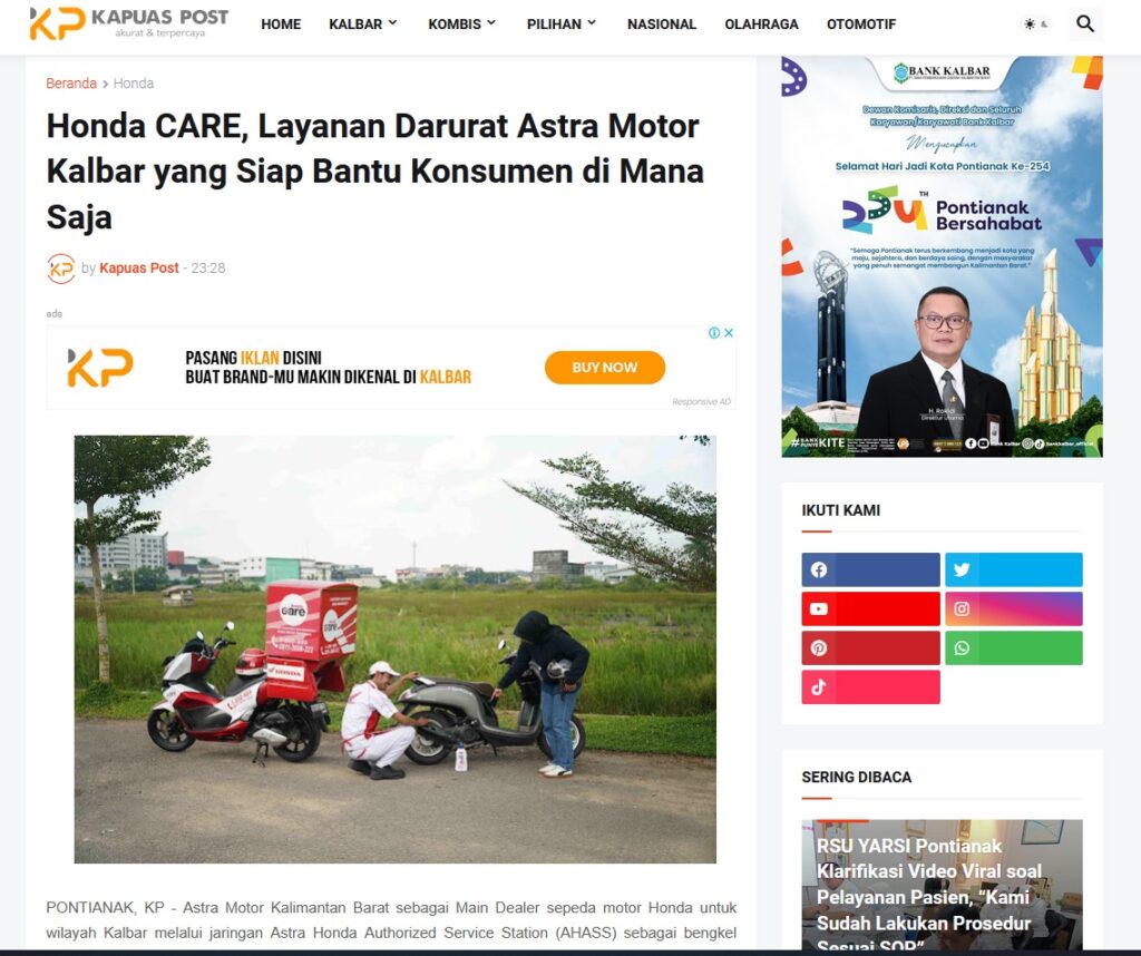 Honda CARE, Layanan Darurat Astra Motor Kalbar yang Siap Bantu Konsumen di Mana Saja by Muhammad Arif 6 November 2025 in Silahkan kunjungi https://www.kapuaspost.web.id/2025/11/honda-care-layanan-darurat-astra-motor.html. Tags: astra Astra Motor kalbar Astra Motor Pontianak astramotor honda kalbar pontianak sepeda motor You Might Like Regional Public Launching New ADV160 The SUV Pride Grand Launching New PCX 160 Truly Exceptional! Tetap hati-hati ya bro sist berkendara saat hujan.