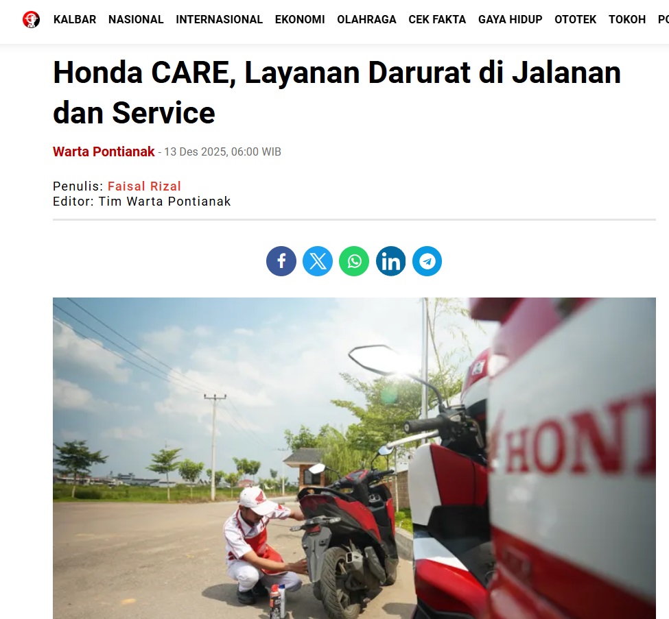 Honda CARE, Layanan Darurat di Jalanan dan Service by Faisal Rizal 13 Desember 2025 in Silahkan kunjungi https://wartapontianak.pikiran-rakyat.com/gaya-hidup/pr-1179859140/honda-care-layanan-darurat-di-jalanan-dan-service. You Might Like Regional Public Launching New ADV160 The SUV Pride Grand Launching New PCX 160 Truly Exceptional! Tetap hati-hati ya bro sist berkendara saat hujan.