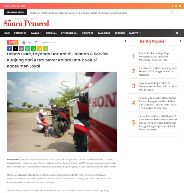 Honda Care, Layanan Darurat di Jalanan & Service Kunjung dari Astra Motor Kalbar untuk Solusi Konsumen Loyal by masmul 10 Januari 2026 in Silahkan kunjungi https://www.suarapemredkalbar.com/read/potret/10012026/honda-care-layanan-darurat-di-jalanan-service-kunjung-dari-astra-motor-kalbaruntuk-solusi-konsumen-loyal. You Might Like Regional Public Launching New ADV160 The SUV Pride Grand Launching New PCX 160 Truly Exceptional! Tetap hati-hati ya bro sist berkendara saat hujan.
