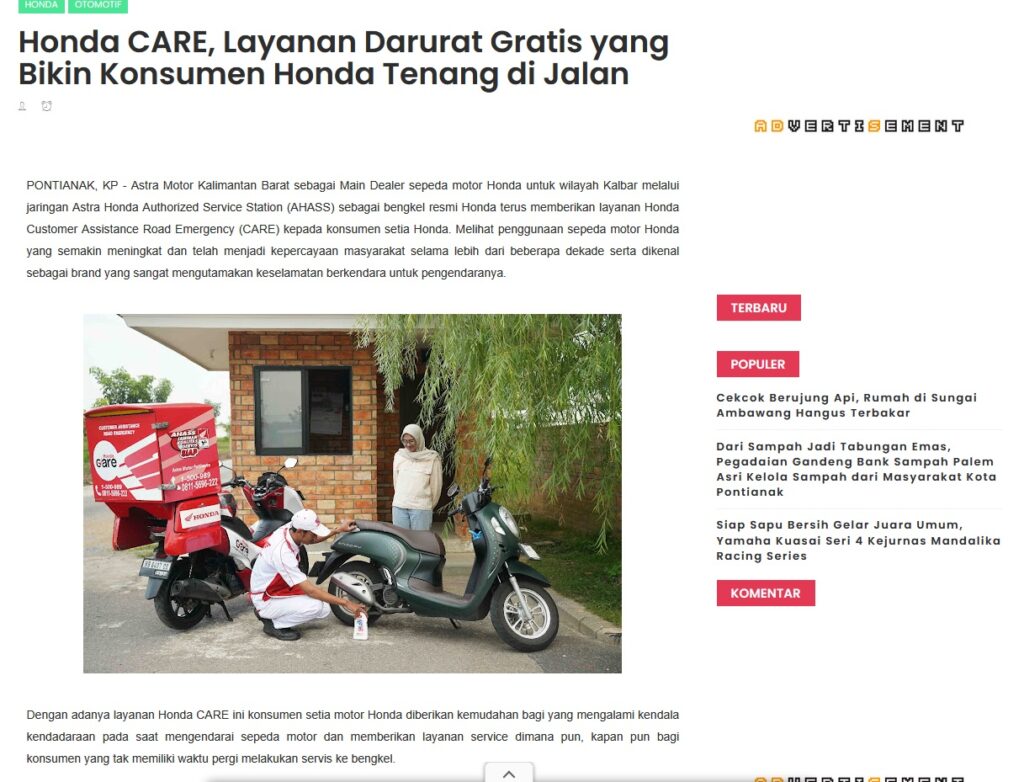 Honda CARE, Layanan Darurat Gratis yang Bikin Konsumen Honda Tenang di Jalan by Muhammad Arif 20 September 2025 in Silahkan kunjungi https://www.kapuaspost.web.id/2025/09/honda-care-layanan-darurat-gratis-yang.html. Tags: astra Astra Motor kalbar Astra Motor Pontianak astramotor honda kalbar pontianak sepeda motor You Might Like Regional Public Launching New ADV160 The SUV Pride Grand Launching New PCX 160 Truly Exceptional! Tetap hati-hati ya bro sist berkendara saat hujan.