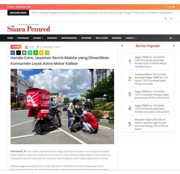 Honda Care, Layanan Servis Mobile yang Dinantikan Konsumen Loyal Astra Motor Kalbar by masmul 1 November 2025 in Silahkan kunjungi https://www.suarapemredkalbar.com/read/potret/01112025/honda-care-layanan-servis-mobile-yang-dinantikan-konsumen-loyal-astra-motor-kalbar. You Might Like Regional Public Launching New ADV160 The SUV Pride Grand Launching New PCX 160 Truly Exceptional! Tetap hati-hati ya bro sist berkendara saat hujan.