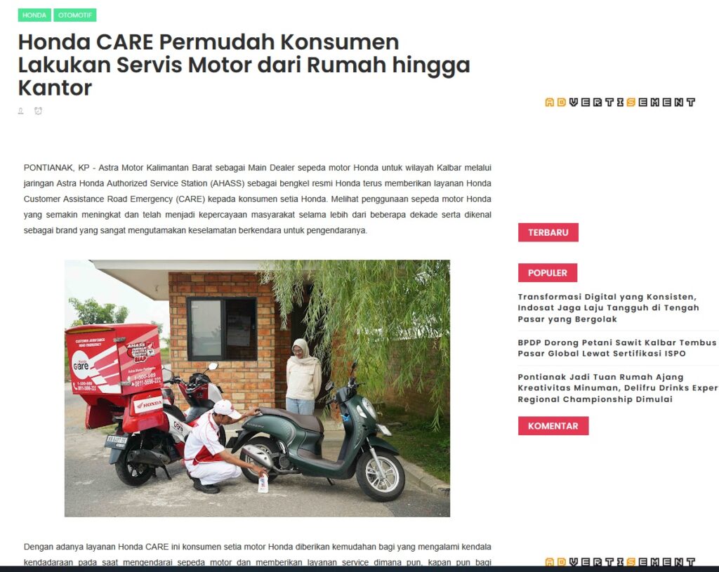 Honda CARE Permudah Konsumen Lakukan Servis Motor dari Rumah hingga Kantor by Muhammad Arif 26 Agustus 2025 in Silahkan kunjungi https://www.kapuaspost.web.id/2025/08/honda-care-permudah-konsumen-lakukan.html. Tags: astra Astra Motor kalbar Astra Motor Pontianak astramotor honda kalbar pontianak sepeda motor You Might Like Regional Public Launching New ADV160 The SUV Pride Grand Launching New PCX 160 Truly Exceptional! Tetap hati-hati ya bro sist berkendara saat hujan.