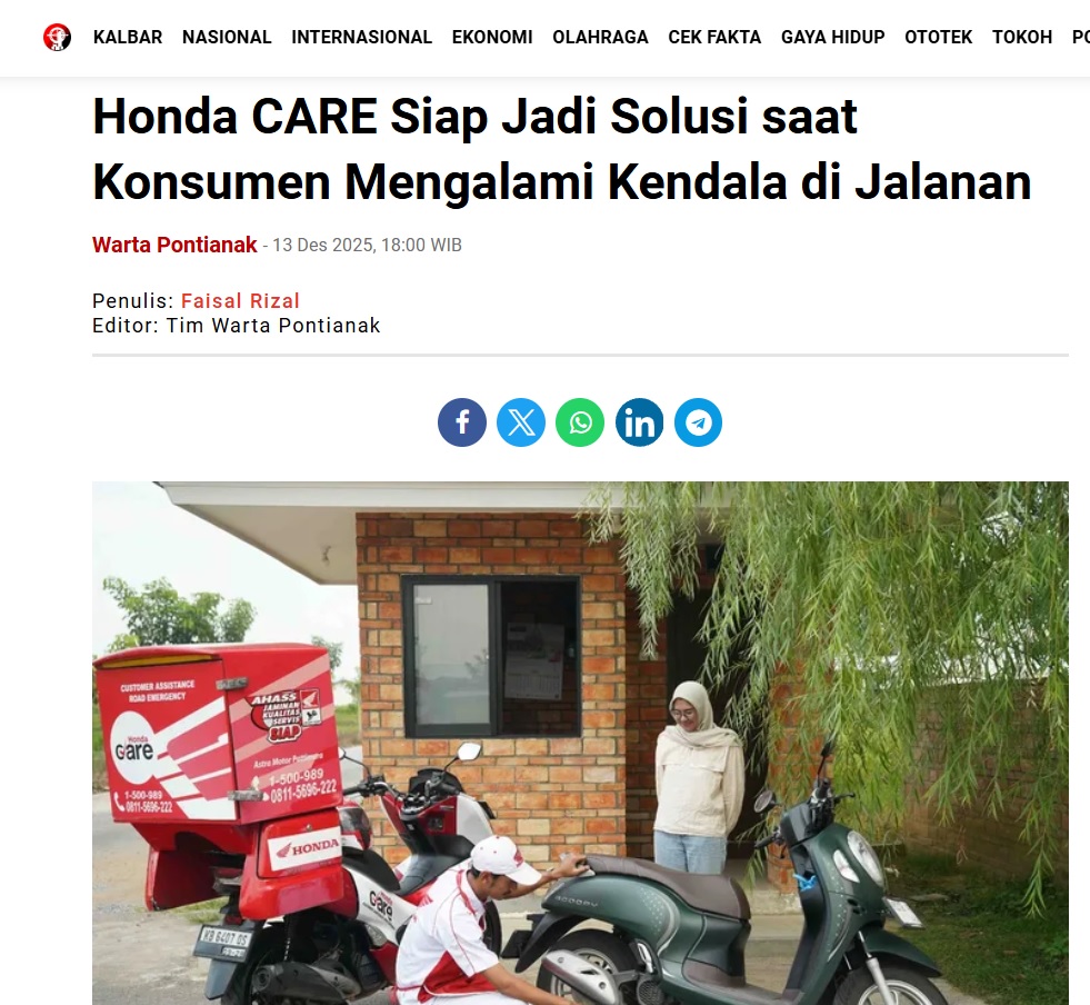 Honda CARE Siap Jadi Solusi saat Konsumen Mengalami Kendala di Jalanan by Faisal Rizal 13 Desember 2025 in Silahkan kunjungi https://wartapontianak.pikiran-rakyat.com/gaya-hidup/pr-1179859148/honda-care-siap-jadi-solusi-saat-konsumen-mengalami-kendala-di-jalanan. You Might Like Regional Public Launching New ADV160 The SUV Pride Grand Launching New PCX 160 Truly Exceptional! Tetap hati-hati ya bro sist berkendara saat hujan.