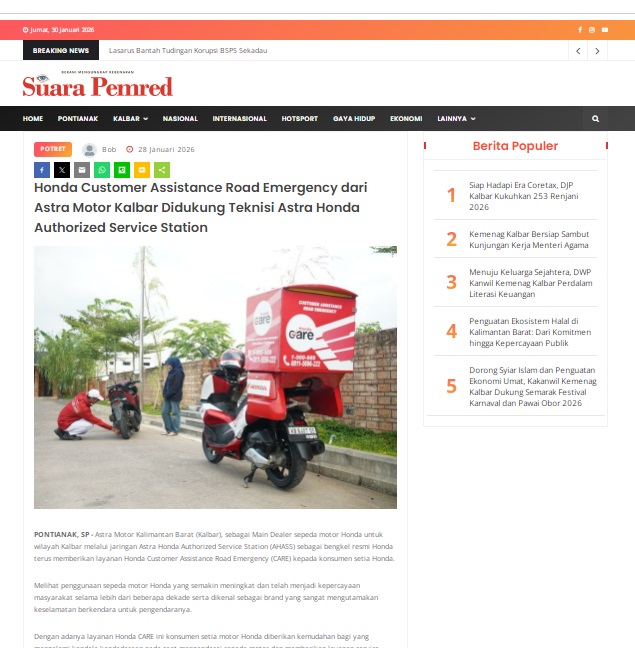 Honda Customer Assistance Road Emergency dari Astra Motor Kalbar Didukung Teknisi Astra Honda Authorized Service Station by masmul 28 Januari 2026 in Silahkan kunjungi https://www.suarapemredkalbar.com/read/potret/28012026/honda-customer-assistance-road-emergency-dari-astra-motor-kalbar-didukung-teknisi-astra-honda-authorized-service-station. You Might Like Regional Public Launching New ADV160 The SUV Pride Grand Launching New PCX 160 Truly Exceptional! Tetap hati-hati ya bro sist berkendara saat hujan.