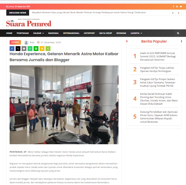 Honda Experience, Gelaran Menarik Astra Motor Kalbar Bersama Jurnalis dan Blogger by masmul 1 Desember 2025 in Silahkan kunjungi https://www.suarapemredkalbar.com/read/potret/01122025/honda-experience-gelaran-menarik-astra-motor-kalbar-bersama-jurnalis-dan-blogger. You Might Like Regional Public Launching New ADV160 The SUV Pride Grand Launching New PCX 160 Truly Exceptional! Tetap hati-hati ya bro sist berkendara saat hujan.