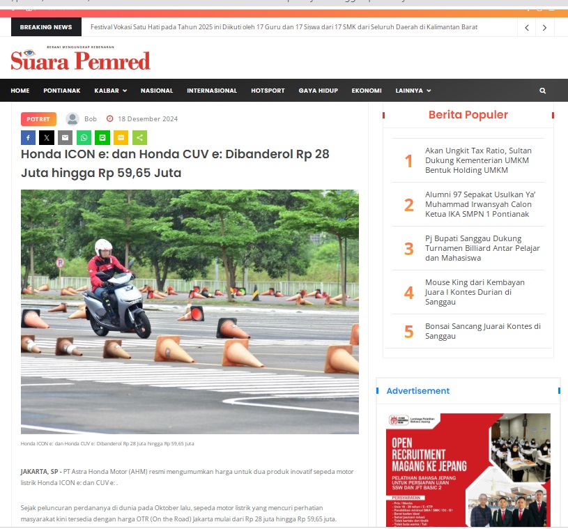 Honda ICON e: dan Honda CUV e: Dibanderol Rp 28 Juta hingga Rp 59,65 Juta by masmul 18 Desember 2024 in Silahkan kunjungi https://www.suarapemredkalbar.com/read/potret/18122024/honda-icon-e-dan-honda-cuv-e-dibanderol-rp-28-juta-hingga-rp-5965-juta. You Might Like Regional Public Launching New ADV160 The SUV Pride Grand Launching New PCX 160 Truly Exceptional! Tetap hati-hati ya bro sist berkendara saat hujan.