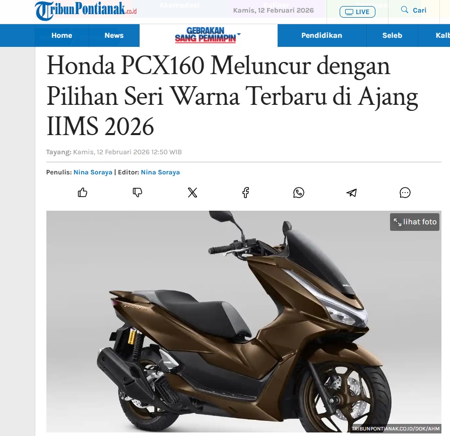 Honda PCX160 Meluncur dengan Pilihan Seri Warna Terbaru di Ajang IIMS 2026 by Nina Soraya 12 Februari 2026 in Silahkan kunjungi https://pontianak.tribunnews.com/otomotif/1161948/honda-pcx160-meluncur-dengan-pilihan-seri-warna-terbaru-di-ajang-iims-2026. You Might Like Regional Public Launching New ADV160 The SUV Pride Grand Launching New PCX 160 Truly Exceptional! Tetap hati-hati ya bro sist berkendara saat hujan.