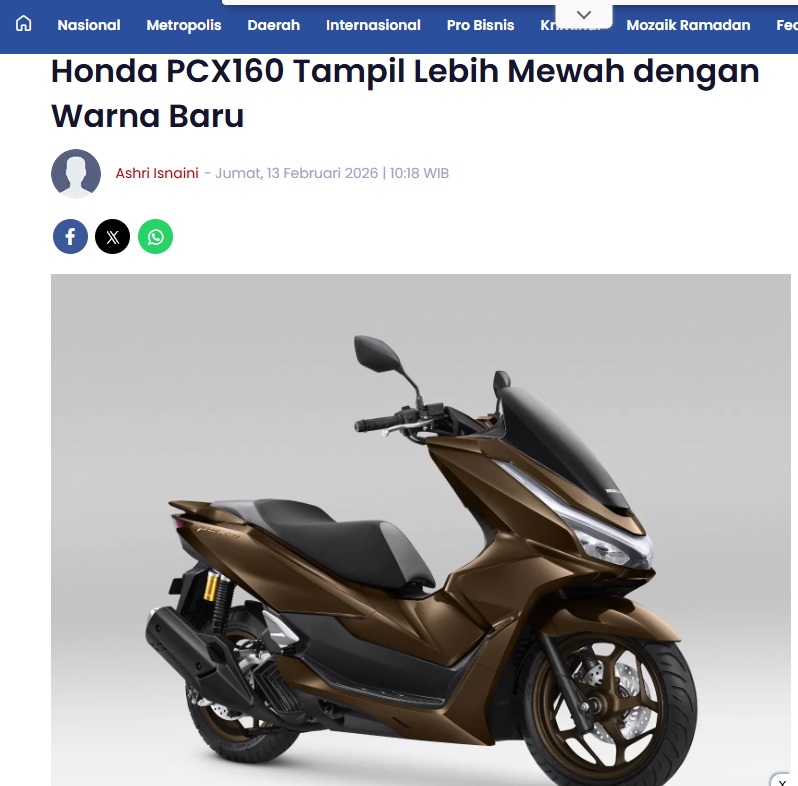 Honda PCX160 Tampil Lebih Mewah dengan Warna Baru by Aristono Edi Kiswantoro 13 Februari 2026 in Silahkan kunjungi https://pontianakpost.jawapos.com/otomotif/1467189315/honda-pcx160-tampil-lebih-mewah-dengan-warna-baru. You Might Like Regional Public Launching New ADV160 The SUV Pride Grand Launching New PCX 160 Truly Exceptional! Tetap hati-hati ya bro sist berkendara saat hujan.