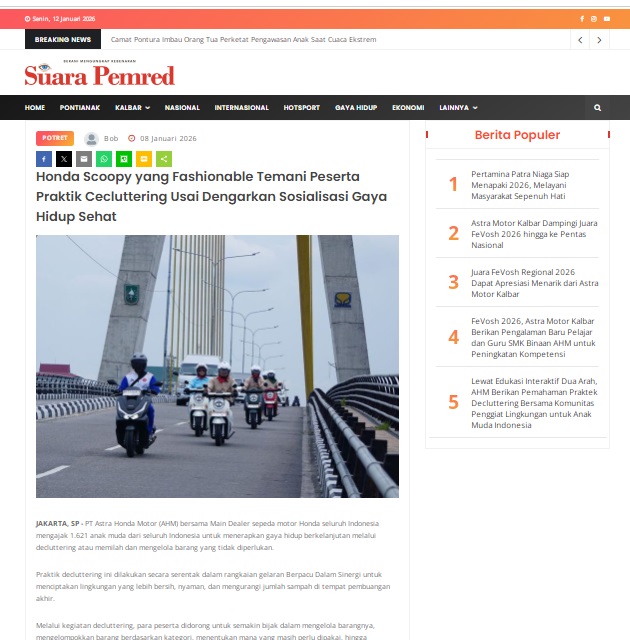 Honda Scoopy yang Fashionable Temani Peserta Praktik Cecluttering Usai Dengarkan Sosialisasi Gaya Hidup Sehat by masmul 8 Januari 2026 in Silahkan kunjungi https://www.suarapemredkalbar.com/read/potret/08012026/honda-scoopy-yang-fashionable-temani-peserta-praktik-cecluttering-usai-dengarkan-sosialisasi-gaya-hidup-sehat. You Might Like Regional Public Launching New ADV160 The SUV Pride Grand Launching New PCX 160 Truly Exceptional! Tetap hati-hati ya bro sist berkendara saat hujan.