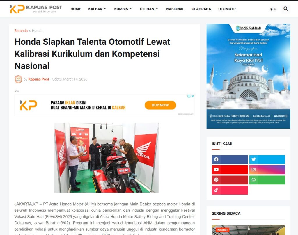 Honda Siapkan Talenta Otomotif Lewat Kalibrasi Kurikulum dan Kompetensi Nasional by Muhammad Arif 14 Maret 2026 in Silahkan kunjungi https://www.kapuaspost.web.id/2026/03/honda-siapkan-talenta-otomotif-lewat.html. Tags: astra Astra Motor kalbar Astra Motor Pontianak astramotor honda kalbar pontianak sepeda motor You Might Like Regional Public Launching New ADV160 The SUV Pride Grand Launching New PCX 160 Truly Exceptional! Tetap hati-hati ya bro sist berkendara saat hujan.