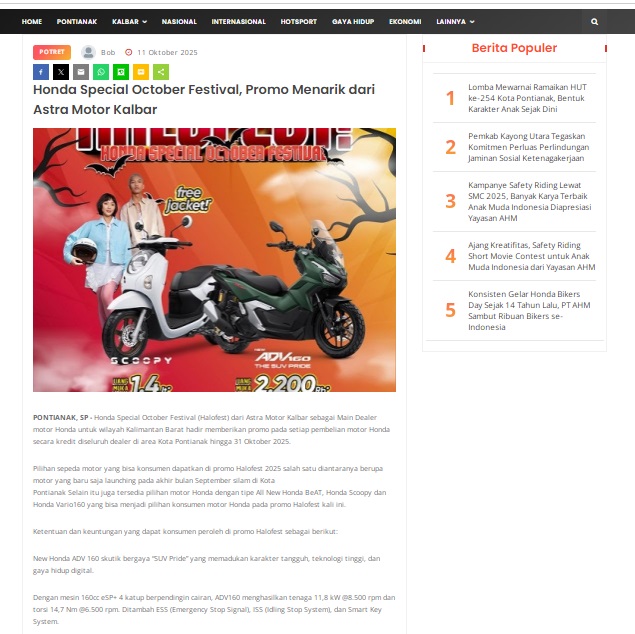 Honda Special October Festival, Promo Menarik dari Astra Motor Kalbar by masmul 11 Oktober 2025 in Silahkan kunjungi https://www.suarapemredkalbar.com/read/potret/11102025/honda-special-october-festival-promo-menarik-dari-astra-motor-kalbar. You Might Like Regional Public Launching New ADV160 The SUV Pride Grand Launching New PCX 160 Truly Exceptional! Tetap hati-hati ya bro sist berkendara saat hujan.