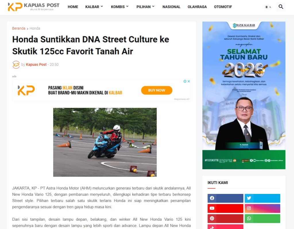 Honda Suntikkan DNA Street Culture ke Skutik 125cc Favorit Tanah Air by Muhammad Arif 9 Januari 2026 in Silahkan kunjungi https://www.kapuaspost.web.id/2026/01/honda-suntikkan-dna-street-culture-ke.html. Tags: astra Astra Motor kalbar Astra Motor Pontianak astramotor honda kalbar pontianak sepeda motor You Might Like Regional Public Launching New ADV160 The SUV Pride Grand Launching New PCX 160 Truly Exceptional! Tetap hati-hati ya bro sist berkendara saat hujan.