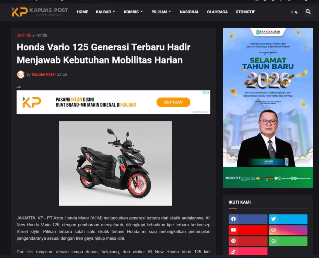 Honda Vario 125 Generasi Terbaru Hadir Menjawab Kebutuhan Mobilitas Harian by Muhammad Arif 3 Januari 2026 in Silahkan kunjungi https://www.kapuaspost.web.id/2026/01/honda-vario-125-generasi-terbaru-hadir.html. Tags: astra Astra Motor kalbar Astra Motor Pontianak astramotor honda kalbar pontianak sepeda motor You Might Like Regional Public Launching New ADV160 The SUV Pride Grand Launching New PCX 160 Truly Exceptional! Tetap hati-hati ya bro sist berkendara saat hujan.