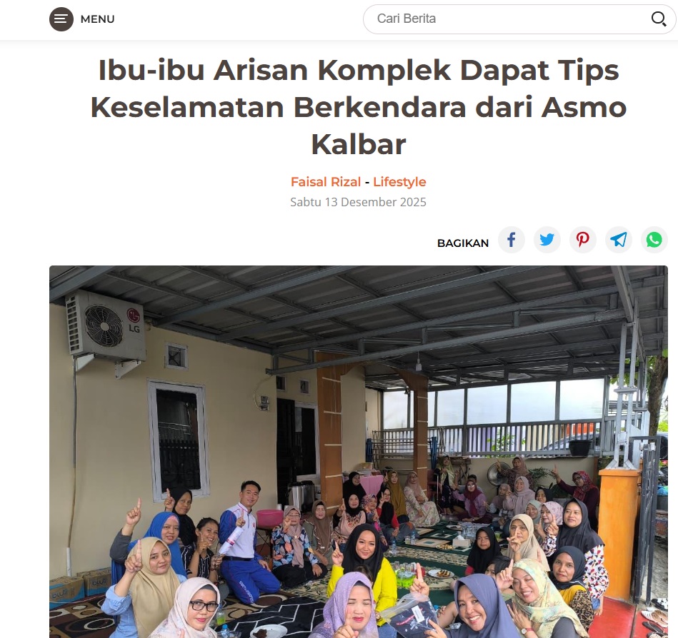 Ibu-ibu Arisan Komplek Dapat Tips Keselamatan Berkendara dari Asmo Kalbar by Dodi Dodi 13 Desember 2025 in Silahkan kunjungi https://harianberkat.com/2025/12/13/ibu-ibu-arisan-komplek-dapat-tips-keselamatan-berkendara-dari-asmo-kalbar/. You Might Like Regional Public Launching New ADV160 The SUV Pride Grand Launching New PCX 160 Truly Exceptional! Tetap hati-hati ya bro sist berkendara saat hujan.