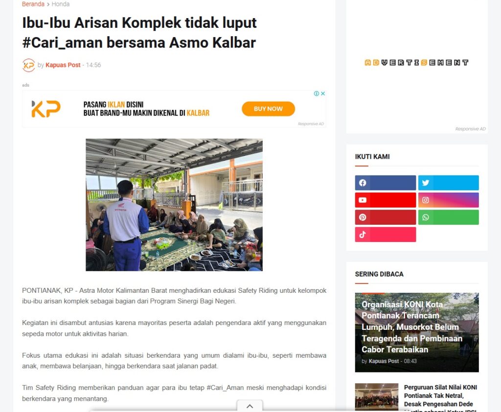 Ibu-Ibu Arisan Komplek tidak luput #Cari_aman bersama Asmo Kalbar by Muhammad Arif 11 Desember 2025 in Silahkan kunjungi https://www.kapuaspost.web.id/2025/12/ibu-ibu-arisan-komplek-tidak-luput.html. Tags: astra Astra Motor kalbar Astra Motor Pontianak astramotor honda kalbar pontianak sepeda motor You Might Like Regional Public Launching New ADV160 The SUV Pride Grand Launching New PCX 160 Truly Exceptional! Tetap hati-hati ya bro sist berkendara saat hujan.