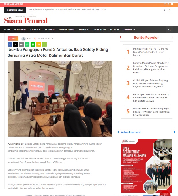 Ibu-Ibu Pengajian Paris 2 Antusias Ikuti Safety Riding Bersama Astra Motor Kalimantan Barat by masmul 21 Maret 2025 in Silahkan kunjungi https://www.suarapemredkalbar.com/read/potret/21032025/ibu-ibu-pengajian-paris-2-antusias-ikuti-safety-riding-bersama-astra-motor-kalimantan-barat. You Might Like Regional Public Launching New ADV160 The SUV Pride Grand Launching New PCX 160 Truly Exceptional! Tetap hati-hati ya bro sist berkendara saat hujan.