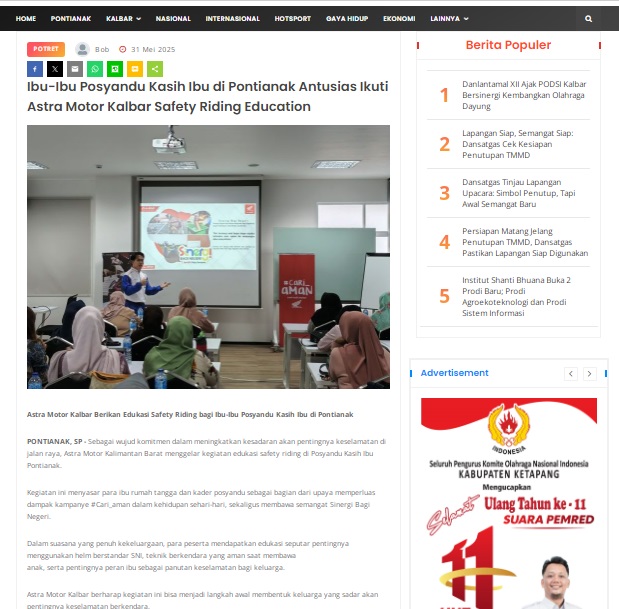 Ibu-Ibu Posyandu Kasih Ibu di Pontianak Antusias Ikuti Astra Motor Kalbar Safety Riding Education by masmul 31 Mei 2025 in Silahkan kunjungi https://www.suarapemredkalbar.com/read/potret/31052025/ibu-ibu-posyandu-kasih-ibu-di-pontianak-antusias-ikuti-astra-motor-kalbar-safety-riding-education. You Might Like Regional Public Launching New ADV160 The SUV Pride Grand Launching New PCX 160 Truly Exceptional! Tetap hati-hati ya bro sist berkendara saat hujan.