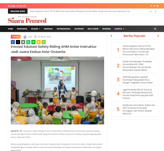 Inovasi Edukasi Safety Riding AHM Antar Instruktur Jadi Juara Kedua Asia-Oceania by masmul 29 Maret 2026 in Silahkan kunjungi https://www.suarapemredkalbar.com/read/potret/29032026/inovasi-edukasi-safety-riding-ahm-antar-instruktur-jadi-juara-kedua-asia-oceania. You Might Like Regional Public Launching New ADV160 The SUV Pride Grand Launching New PCX 160 Truly Exceptional! Tetap hati-hati ya bro sist berkendara saat hujan.