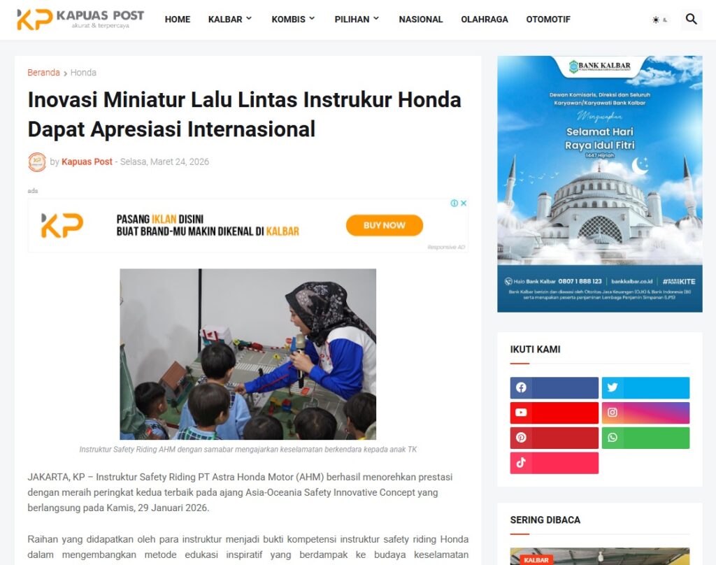 Inovasi Miniatur Lalu Lintas Instrukur Honda Dapat Apresiasi Internasional by Muhammad Arif 24 Maret 2026 in Silahkan kunjungi https://www.kapuaspost.web.id/2026/03/inovasi-miniatur-lalu-lintas-instrukur.html. Tags: astra Astra Motor kalbar Astra Motor Pontianak astramotor honda kalbar pontianak sepeda motor You Might Like Regional Public Launching New ADV160 The SUV Pride Grand Launching New PCX 160 Truly Exceptional! Tetap hati-hati ya bro sist berkendara saat hujan.