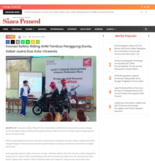 Inovasi Safety Riding AHM Tembus Panggung Dunia, Sabet Juara Dua Asia-Oceania by masmul 28 Maret 2026 in Silahkan kunjungi https://www.suarapemredkalbar.com/read/potret/28032026/inovasi-safety-riding-ahm-tembus-panggung-dunia-sabet-juara-dua-asia-oceania. You Might Like Regional Public Launching New ADV160 The SUV Pride Grand Launching New PCX 160 Truly Exceptional! Tetap hati-hati ya bro sist berkendara saat hujan.