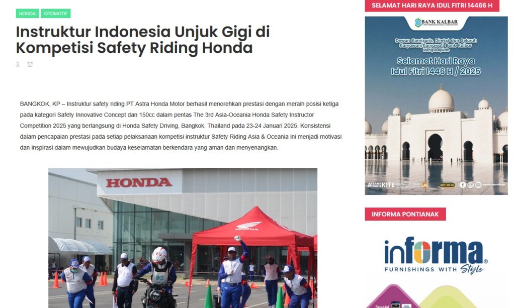 Instruktur Indonesia Unjuk Gigi di Kompetisi Safety Riding Honda by Muhammad Arif 4 April 2025 in Silahkan kunjungi https://www.kapuaspost.web.id/2025/04/instruktur-indonesia-unjuk-gigi-di.html. Tags: astra Astra Motor kalbar Astra Motor Pontianak astramotor honda kalbar pontianak sepeda motor You Might Like Regional Public Launching New ADV160 The SUV Pride Grand Launching New PCX 160 Truly Exceptional! Tetap hati-hati ya bro sist berkendara saat hujan.
