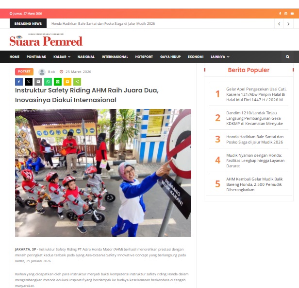 Instruktur Safety Riding AHM Raih Juara Dua, Inovasinya Diakui Internasional by masmul 25 Maret 2026 in Silahkan kunjungi https://www.suarapemredkalbar.com/read/potret/25032026/instruktur-safety-riding-ahm-raih-juara-dua-inovasinya-diakui-internasional. You Might Like Regional Public Launching New ADV160 The SUV Pride Grand Launching New PCX 160 Truly Exceptional! Tetap hati-hati ya bro sist berkendara saat hujan.