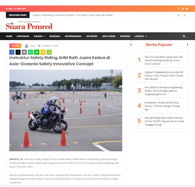 Instruktur Safety Riding AHM Raih Juara Kedua di Asia-Oceania Safety Innovative Concept by masmul 16 Maret 2026 in Silahkan kunjungi https://www.suarapemredkalbar.com/read/potret/16032026/instruktur-safety-riding-ahm-raih-juara-kedua-di-asia-oceania-safety-innovative-concept-1. You Might Like Regional Public Launching New ADV160 The SUV Pride Grand Launching New PCX 160 Truly Exceptional! Tetap hati-hati ya bro sist berkendara saat hujan.
