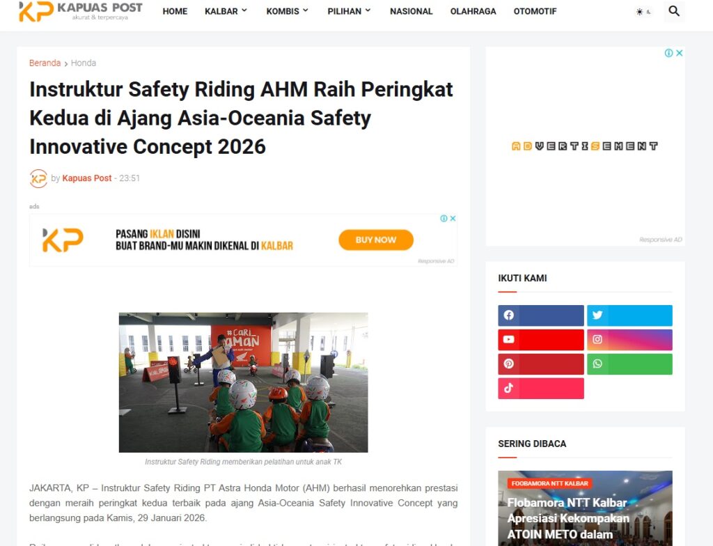 Instruktur Safety Riding AHM Raih Peringkat Kedua di Ajang Asia-Oceania Safety Innovative Concept 2026 by Muhammad Arif 6 Februari 2026 in Silahkan kunjungi https://www.kapuaspost.web.id/2026/02/instruktur-safety-riding-ahm-raih_11.html. Tags: astra Astra Motor kalbar Astra Motor Pontianak astramotor honda kalbar pontianak sepeda motor You Might Like Regional Public Launching New ADV160 The SUV Pride Grand Launching New PCX 160 Truly Exceptional! Tetap hati-hati ya bro sist berkendara saat hujan.
